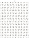 请按从左到右,从上到下的顺序,把和第一行相同的图形圈出来。